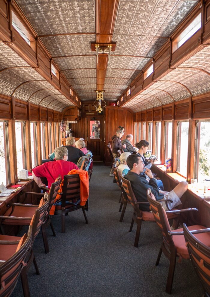 War im sog. Parlor Car am Ende des Zuges, stand aber oft entweder auf der Plattform dieses Wagens oder im offenen Wagen in Zugmitte.