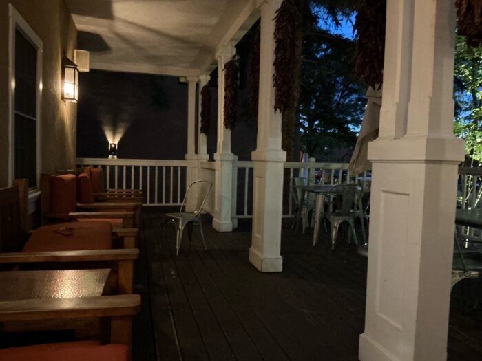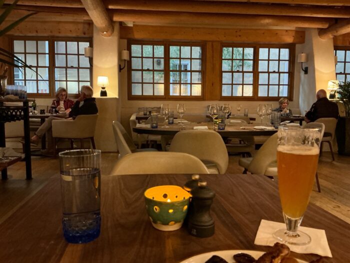 Sitze in einem Dining Room eines guten Hotels und habe gut gegessen – nicht viele patrons (Gäste) hier, ruhige Atmosphäre, leichter Jazz aus den Lautsprechern. Begonnen mit wirklich gutem Marguerita, üblich im Südwesten.