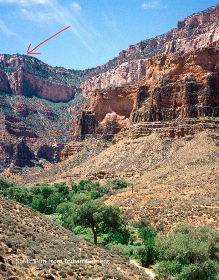 Ja, es gibt einen Wanderweg dort hinauf, er heisst Bright Angel Trail und es geht ca. 1000 M hinauf. Zum Fluss runter sind es nochmals 400 Meter.