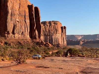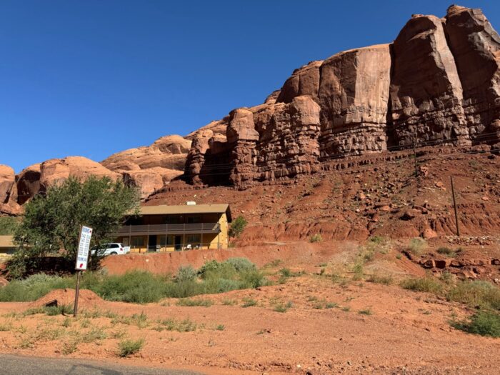 Es führt kein Weg am Monument Valley vorbei, will man vom Grand Canyon wieder gen Nord-Ost fahren (gegen Colorado). Bisher bin ich hier immer nur durchgefahren auf Hwy 163, diesmal aber will ich zwei Nächte hier verbringen in der von Navajos geführten Goulding Lodge. Sie liegt am Fusse von grossen Mesas und meine Suite liegt im oberen Stock dieses Gebäudes.
