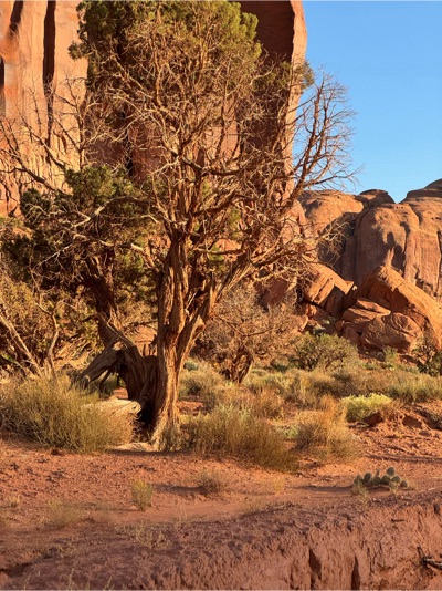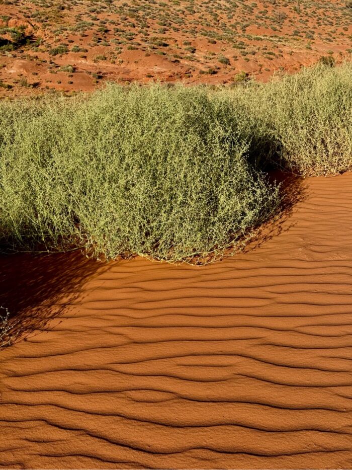Die Erhebungen sehen natürlich vom Boden aus gesehen sehr imposant aus, es gibt grosse (Mesas) und kleine (Buttes) und nadelförmige. Die Erosion hat an verschiedenen Orten anderes erzeugt. Die jährliche Regenmenge hier beträgt magere 120 mm, in Zürich wars in 2023 etwa 1200 mm. Hier verdunstet ein grosser Teil des wenigen Regens.
