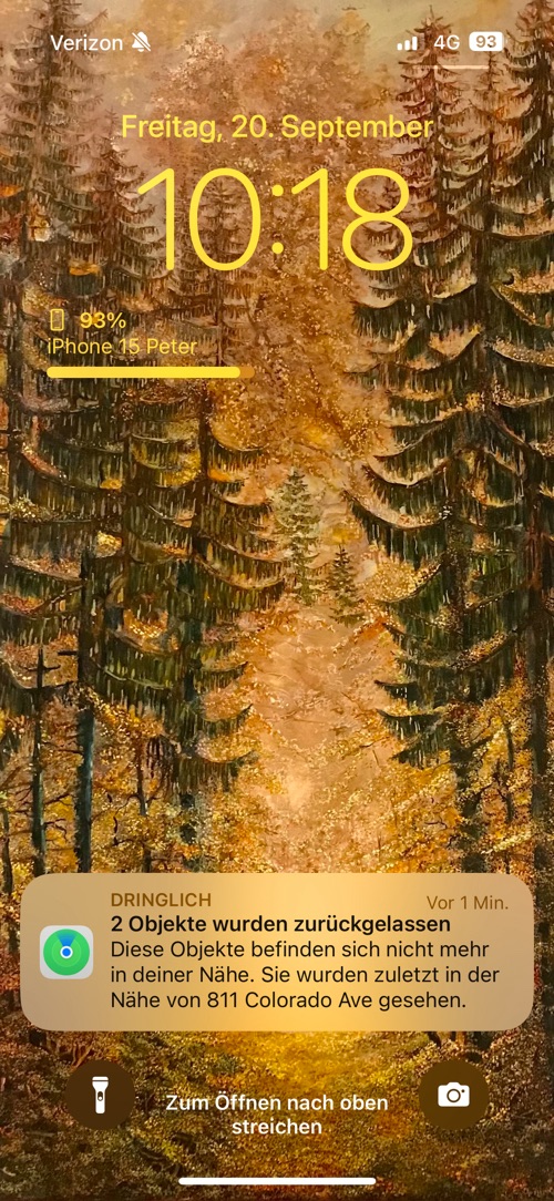 Ich werde also daran erinnert, dass Koffer und Handgepäck nicht mehr in meiner unmittelbaren Nähe sind. Dies kommt daher, dass mein iPhone die Bluetooth Connection zu beiden Airtags verloren hat.