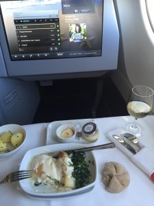 Wie ich schon mal sagte: die Gebrüder Wright täten sich hundertmal im Grab drehen vor Freude über die Perfektionierung ihres Traumes. Konnte flach liegen zum Schlafen, not bad. Noise Cancelling Kopfhörer sind fürs Fliegen sehr dienlich: der Fluglärm wird fast vollständig ausgeblendet und das ist toll, aber im ersten Moment etwas surreal: es ist, wie wenn man die reale Welt verlassen täte. Kind of strange!