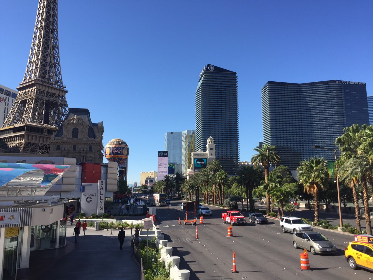 Die 4 Damen am Gepäckkarussell getroffen, dann mit Taxi mitten in die grosse, laute und fast überwältigende Chilbi, auf der Karte als Las Vegas vermerkt. Das grosse Hotel Paris, Las Vegas mit Arch de Triomphe und Eiffelturm. Mittlere Preisklasse mit ca. 220 dollari pro Zimmer und Nacht. Temperatur ok, kurzes Hemd nachts um 11 Uhr ist ganz passend.